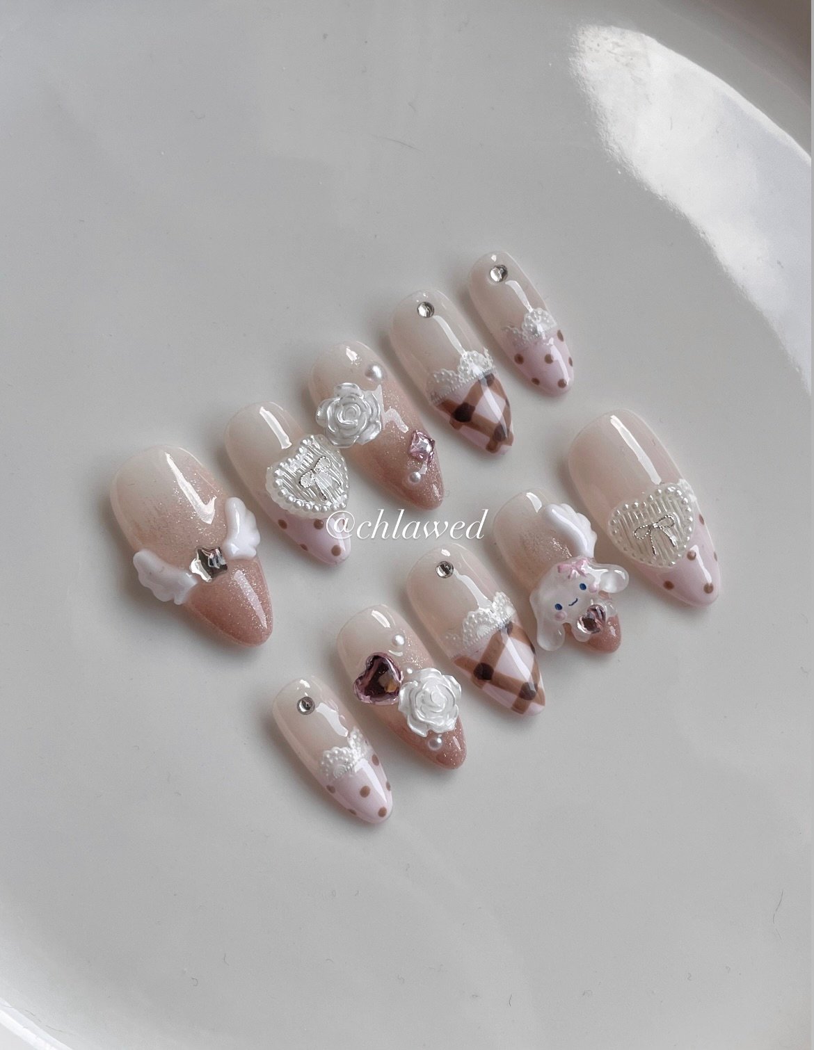A gorgeous brown tone inspired set featuring an angel Cinnamoroll, and delicious pink, brown, and beige hues of color!